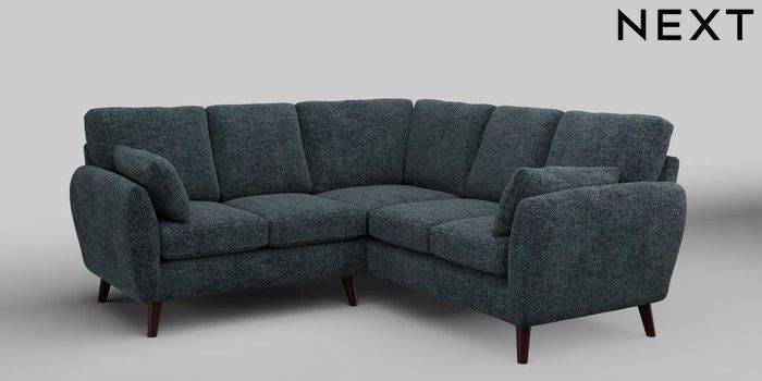 6.12.1 Buy Wilson Small Corner Sofa - Universal Chunky Chenille Dark Navy Blue Retro Tapered - Dark Brown from the Next UK online shop Click here to use our accessible website