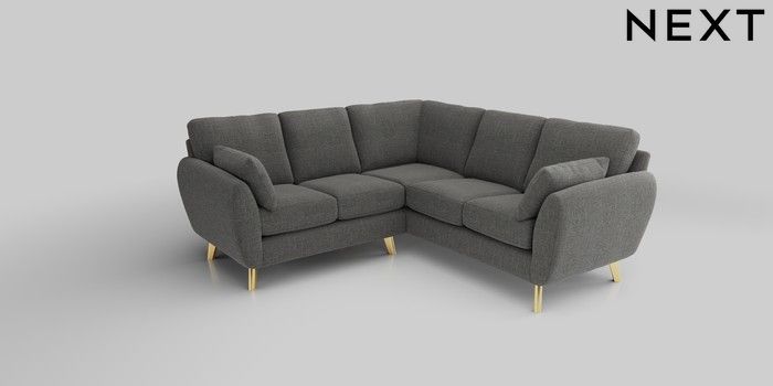 6.12.1 Buy Wilson Small Corner Sofa - Universal Chunky Texture Dark Grey Metal Tapered - Gold from the Next UK online shop Click here to use our accessible website
