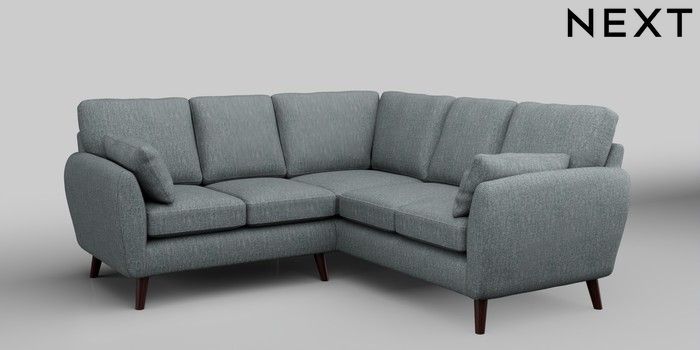 6.12.1 Buy Wilson Small Corner Sofa - Universal Chunky Weave Mid Blue Retro Tapered - Dark Brown from the Next UK online shop Click here to use our accessible website