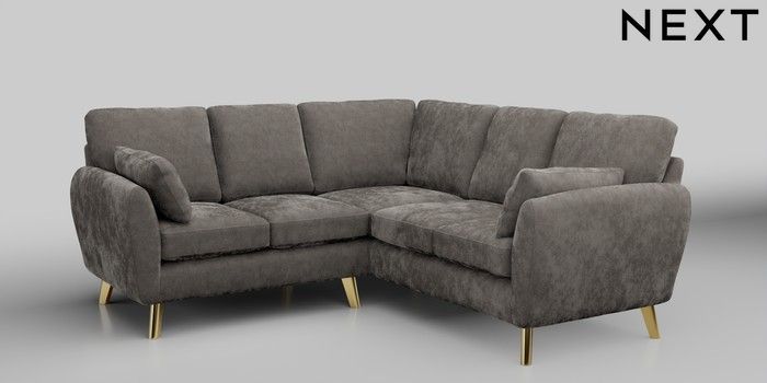 6.12.1 Buy Wilson Small Corner Sofa - Universal Distressed Velour French Grey Metal Tapered - Gold from the Next UK online shop Click here to use our accessible website