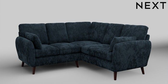 6.12.1 Buy Wilson Small Corner Sofa - Universal Distressed Velour Midnight Blue Retro Tapered - Dark Brown from the Next UK online shop Click here to use our accessible website