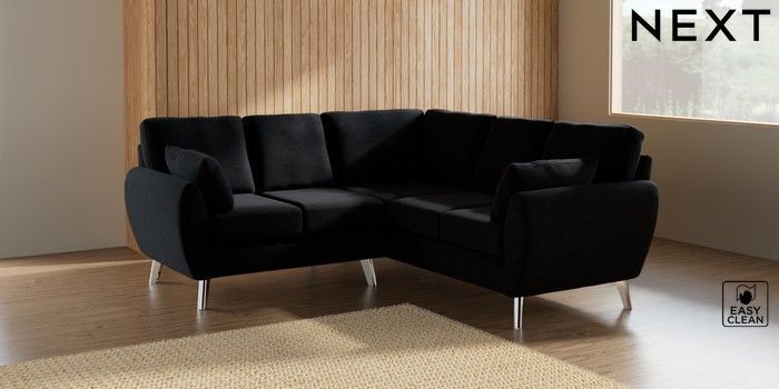 7.3.1 Buy Wilson Small Corner Sofa - Universal Fine Chenille Easy Clean Black Metal Tapered - Chrome from the Next UK online shop