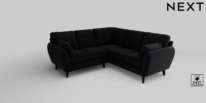 6.12.1 Buy Wilson Small Corner Sofa - Universal Fine Chenille Easy Clean Black Retro Tapered - Dark from the Next UK online shop Click here to use our accessible website