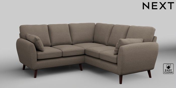 6.12.1 Buy Wilson Small Corner Sofa - Universal Fine Chenille Easy Clean Mid Taupe Brown Retro Tapered - Dark Brown from the Next UK online shop Click here to use our accessible website