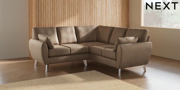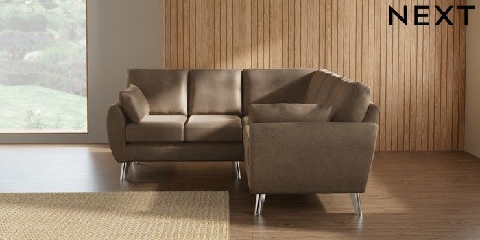 7.3.1 Buy Wilson Small Corner Sofa - Universal Luxe Chenille Mid Camel Beige Metal Tapered - Chrome from the Next UK online shop
