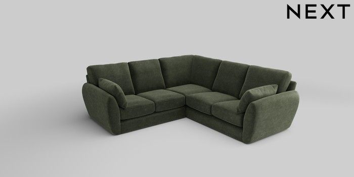 6.12.1 Buy Wilson Small Corner Sofa - Universal Luxe Chenille Mid Green Metal Tapered - Chrome from the Next UK online shop Click here to use our accessible website
