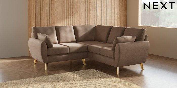 7.3.1 Buy Wilson Small Corner Sofa - Universal Luxe Chenille Mid Natural Metal Tapered - Gold from the Next UK online shop Click here to use our accessible website