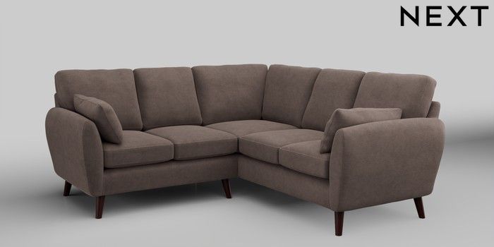 6.12.1 Buy Wilson Small Corner Sofa - Universal Luxe Chenille Mink Brown Retro Tapered - Dark Brown from the Next UK online shop Click here to use our accessible website