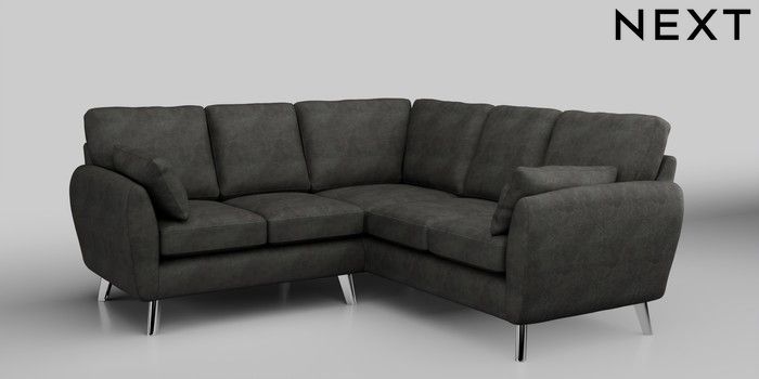 6.12.1 Buy Wilson Small Corner Sofa - Universal Monza Faux Leather Easy Clean Dark Grey Metal Tapered - Chrome from the Next UK online shop Click here to use our accessible website