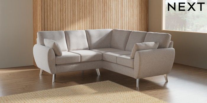 7.2.6 Buy Wilson Small Corner Sofa - Universal Multi Weave Oyster Metal Tapered - Chrome from the Next UK online shop Click here to use our accessible website