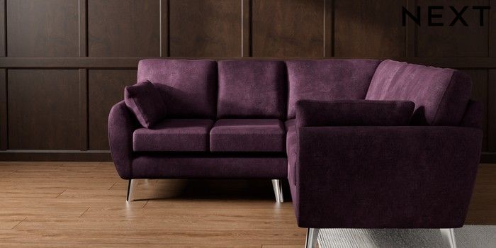 7.3.1 Buy Wilson Small Corner Sofa - Universal Plush Chenille Dark Plum Purple Metal Tapered - Chrome from the Next UK online shop
