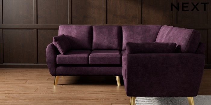 7.3.1 Buy Wilson Small Corner Sofa - Universal Plush Chenille Dark Plum Purple Metal Tapered - Gold from the Next UK online shop