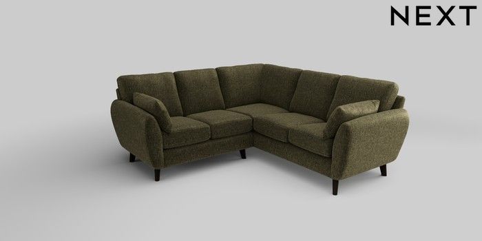 6.12.1 Buy Wilson Small Corner Sofa - Universal Plush Chenille Moss Green Retro Tapered - Dark from the Next UK online shop Click here to use our accessible website