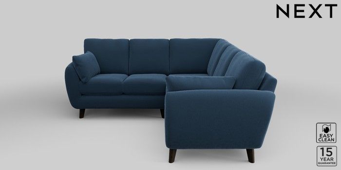 6.11.4 Buy Wilson Small Corner Sofa - Universal Plush Velvet Easy Clean Airforce Blue Retro Tapered - Dark from the Next UK online shop Click here to use our accessible website