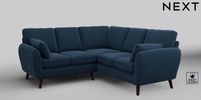 6.12.1 Buy Wilson Small Corner Sofa - Universal Plush Velvet Easy Clean Airforce Blue Retro Tapered - Dark Brown from the Next UK online shop Click here to use our accessible website
