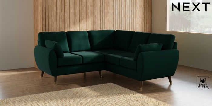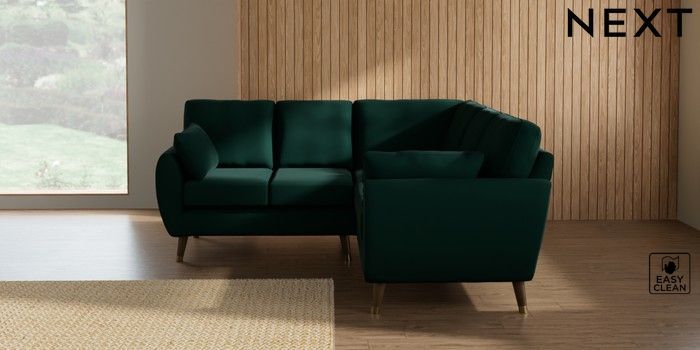 7.3.1 Buy Wilson Small Corner Sofa - Universal Plush Velvet Easy Clean Bottle Green Low Retro Tapered Metal Cap - Mid from the Next UK online shop