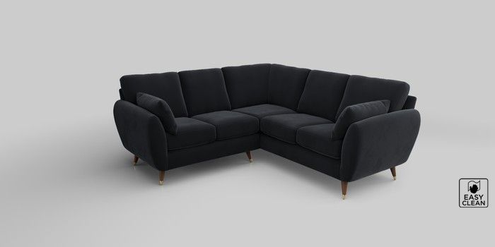6.12.1 Buy Wilson Small Corner Sofa - Universal Plush Velvet Easy Clean Charcoal Grey Low Retro Tapered Metal Cap - Mid from the Next UK online shop Click here to use our accessible website