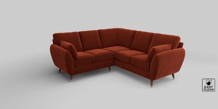 6.12.1 Buy Wilson Small Corner Sofa - Universal Plush Velvet Easy Clean Ginger Orange Low Retro Tapered Metal Cap - Mid from the Next UK online shop Click here to use our accessible website