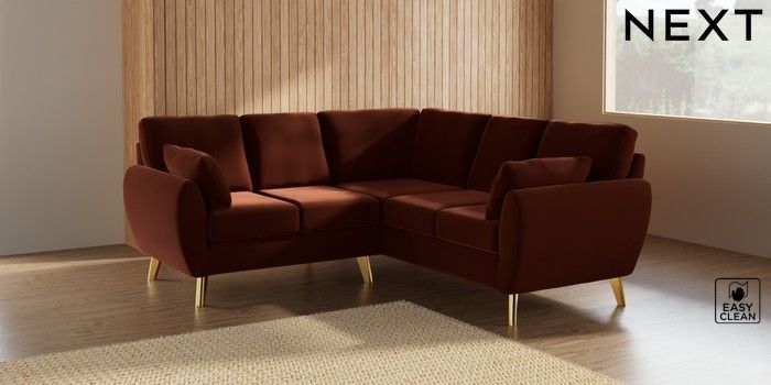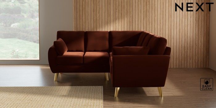 7.3.1 Buy Wilson Small Corner Sofa - Universal Plush Velvet Easy Clean Ginger Orange Metal Tapered - Gold from the Next UK online shop