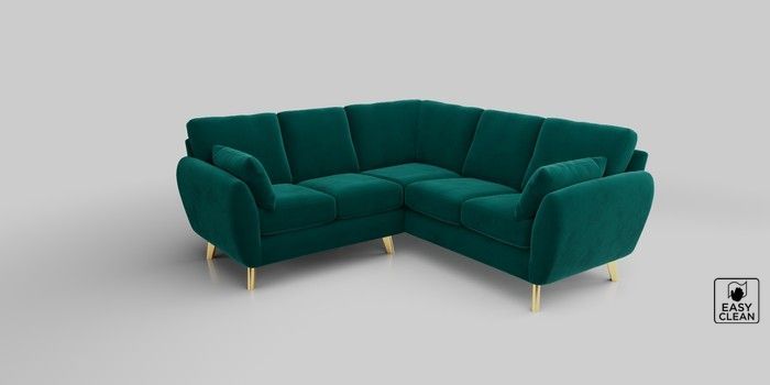 6.12.1 Buy Wilson Small Corner Sofa - Universal Plush Velvet Easy Clean Juniper Green Metal Tapered - Gold from the Next UK online shop Click here to use our accessible website