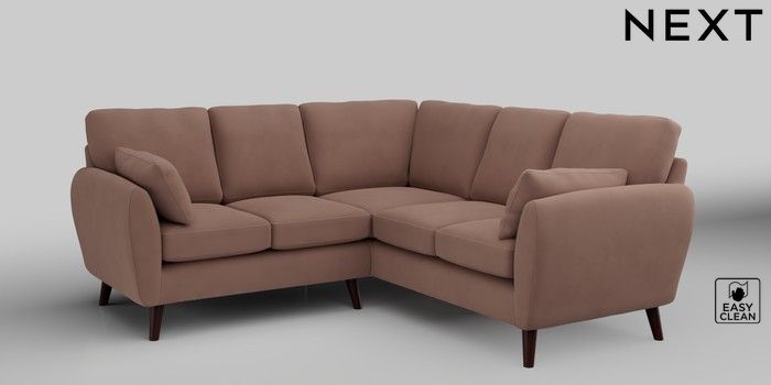 6.12.1 Buy Wilson Small Corner Sofa - Universal Plush Velvet Easy Clean Mid Natural Retro Tapered - Dark Brown from the Next UK online shop Click here to use our accessible website