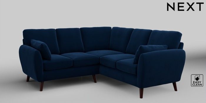 6.12.1 Buy Wilson Small Corner Sofa - Universal Plush Velvet Easy Clean Navy Blue Retro Tapered - Dark Brown from the Next UK online shop Click here to use our accessible website