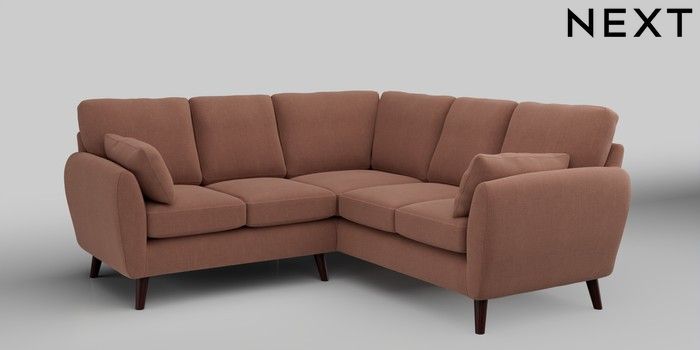 6.12.1 Buy Wilson Small Corner Sofa - Universal Relaxed Linen Look Light Rust Brown Retro Tapered - Dark Brown from the Next UK online shop Click here to use our accessible website