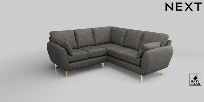 6.12.1 Buy Wilson Small Corner Sofa - Universal Tweedy Blend Easy Clean Dark Grey Metal Tapered - Gold from the Next UK online shop Click here to use our accessible website
