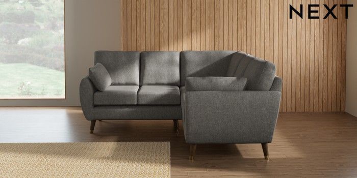7.3.1 Buy Wilson Small Corner Sofa - Universal Tweedy Chenille Mid Grey Low Retro Tapered Metal Cap - Mid from the Next UK online shop