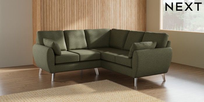 7.3.1 Buy Wilson Small Corner Sofa - Universal Tweedy Chenille Mid Moss Green Metal Tapered - Chrome from the Next UK online shop