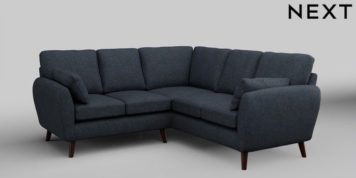 6.12.1 Buy Wilson Small Corner Sofa - Universal Tweedy Chenille Navy Blue Retro Tapered - Dark Brown from the Next UK online shop Click here to use our accessible website