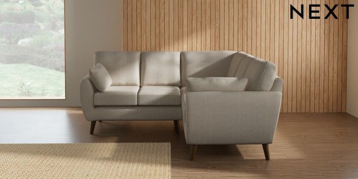 7.3.1 Buy Wilson Small Corner Sofa - Universal Tweedy Chenille Oyster Retro Tapered - Mid from the Next UK online shop