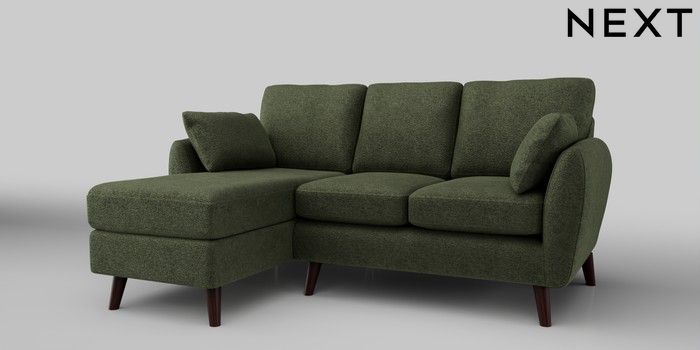 6.12.1 Buy Wilson Small Sofa Chaise - Left Hand Boucle Chenille Dark Moss Green Retro Tapered - Dark Brown from the Next UK online shop Click here to use our accessible website