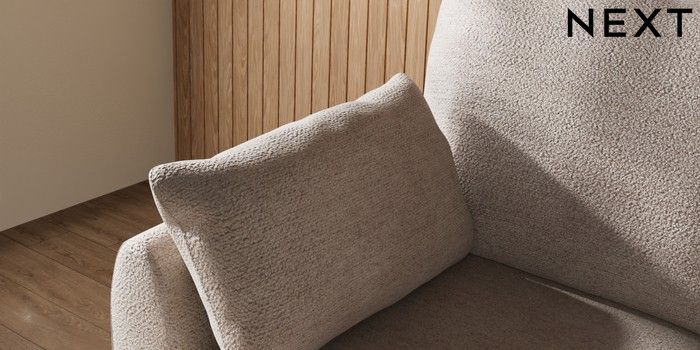 7.3.1 Buy Wilson Small Sofa Chaise - Left Hand Boucle Chenille Light Natural Retro Tapered - Dark from the Next UK online shop
