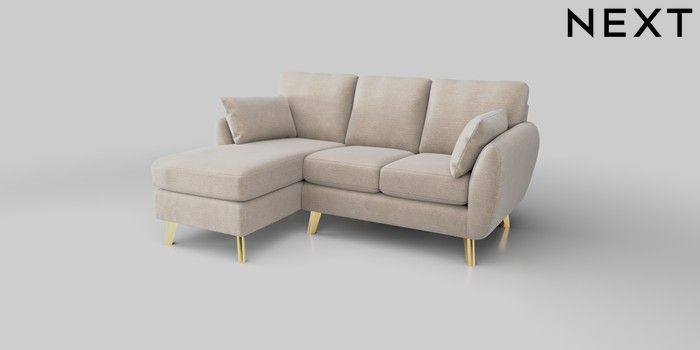 6.12.1 Buy Wilson Small Sofa Chaise - Left Hand Boucle Chenille Oyster Metal Tapered - Gold from the Next UK online shop Click here to use our accessible website