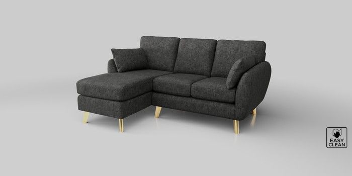 6.12.1 Buy Wilson Small Sofa Chaise - Left Hand Boucle Weave Easy Clean Charcoal Grey Metal Tapered - Gold from the Next UK online shop Click here to use our accessible website