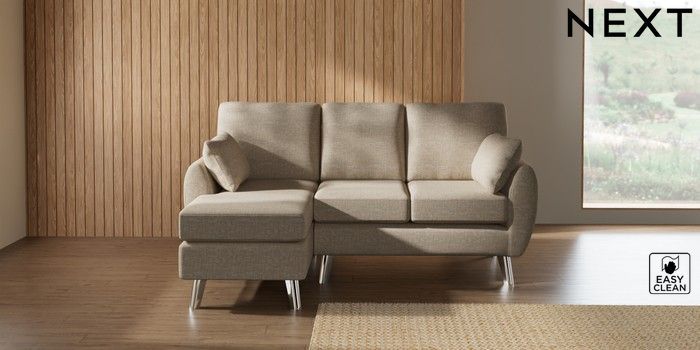 7.3.1 Buy Wilson Small Sofa Chaise - Left Hand Boucle Weave Easy Clean Dark Natural Metal Tapered - Chrome from the Next UK online shop