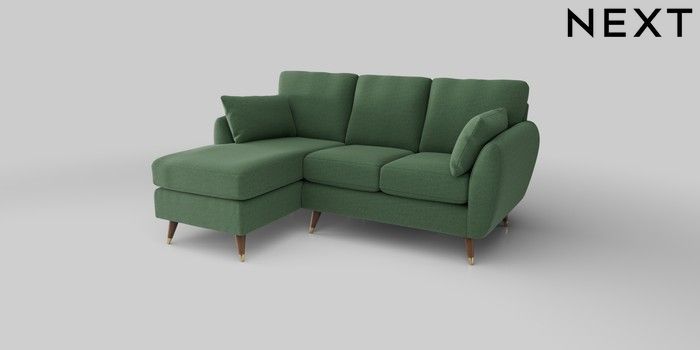 6.12.1 Buy Wilson Small Sofa Chaise - Left Hand Relaxed Linen Look Dark Green Low Retro Tapered Metal Cap - Mid from the Next UK online shop Click here to use our accessible website