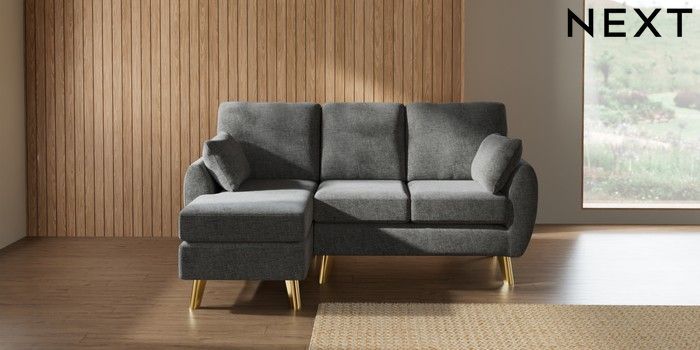 7.3.1 Buy Wilson Small Sofa Chaise - Left Hand Chunky Chenille Dark Grey Metal Tapered - Gold from the Next UK online shop