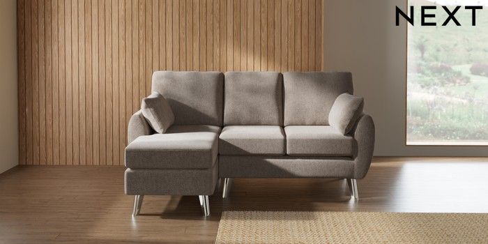 7.3.1 Buy Wilson Small Sofa Chaise - Left Hand Chunky Chenille Light Dove Metal Tapered - Chrome from the Next UK online shop