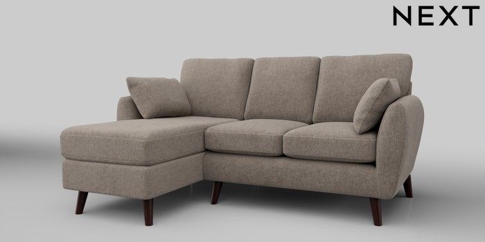 6.12.1 Buy Wilson Small Sofa Chaise - Left Hand Chunky Chenille Light Dove Retro Tapered - Dark Brown from the Next UK online shop Click here to use our accessible website