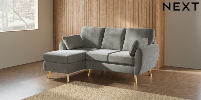 7.3.1 Buy Wilson Small Sofa Chaise - Left Hand Chunky Chenille Light Grey Metal Tapered - Gold from the Next UK online shop