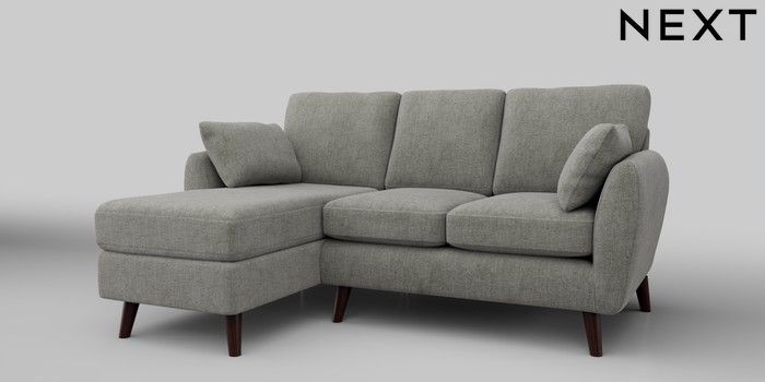 6.12.1 Buy Wilson Small Sofa Chaise - Left Hand Chunky Chenille Light Grey Retro Tapered - Dark Brown from the Next UK online shop Click here to use our accessible website