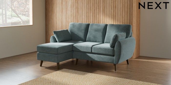 7.2.10 Buy Wilson Small Sofa Chaise - Left Hand Chunky Chenille Light Teal Green Retro Tapered - Mid from the Next UK online shop Click here to use our accessible website
