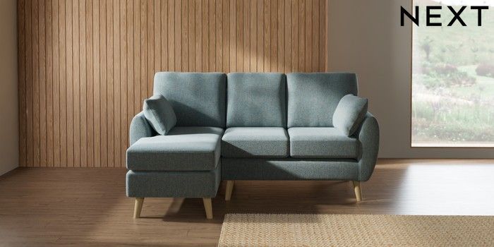 7.3.1 Buy Wilson Small Sofa Chaise - Left Hand Chunky Marl Mid Blue Retro Tapered - Light from the Next UK online shop