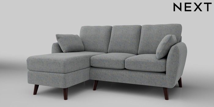 6.12.1 Buy Wilson Small Sofa Chaise - Left Hand Chunky Marl Mid Grey Retro Tapered - Dark Brown from the Next UK online shop Click here to use our accessible website