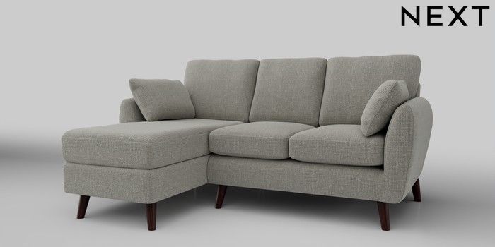 6.12.1 Buy Wilson Small Sofa Chaise - Left Hand Chunky Texture Dove Retro Tapered - Dark Brown from the Next UK online shop Click here to use our accessible website