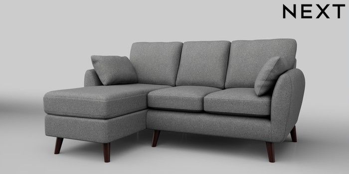 6.12.1 Buy Wilson Small Sofa Chaise - Left Hand Chunky Weave Mid Grey Retro Tapered - Dark Brown from the Next UK online shop Click here to use our accessible website