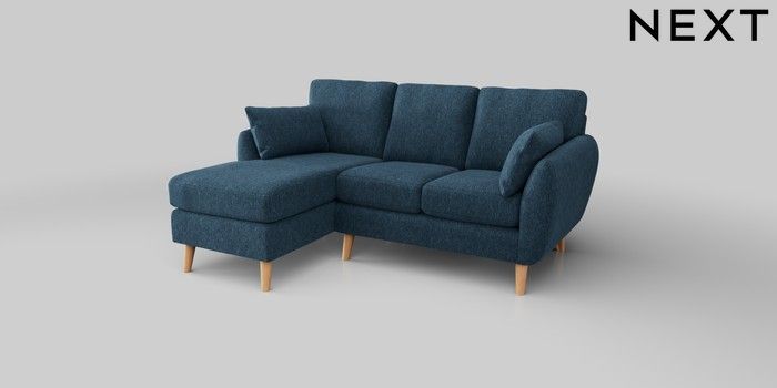 6.12.1 Buy Wilson Small Sofa Chaise - Left Hand Cotswold Chenille Dark Blue Retro Tapered - Light from the Next UK online shop Click here to use our accessible website