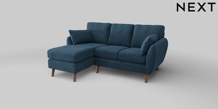 6.12.1 Buy Wilson Small Sofa Chaise - Left Hand Cotswold Chenille Dark Blue Retro Tapered - Mid from the Next UK online shop Click here to use our accessible website